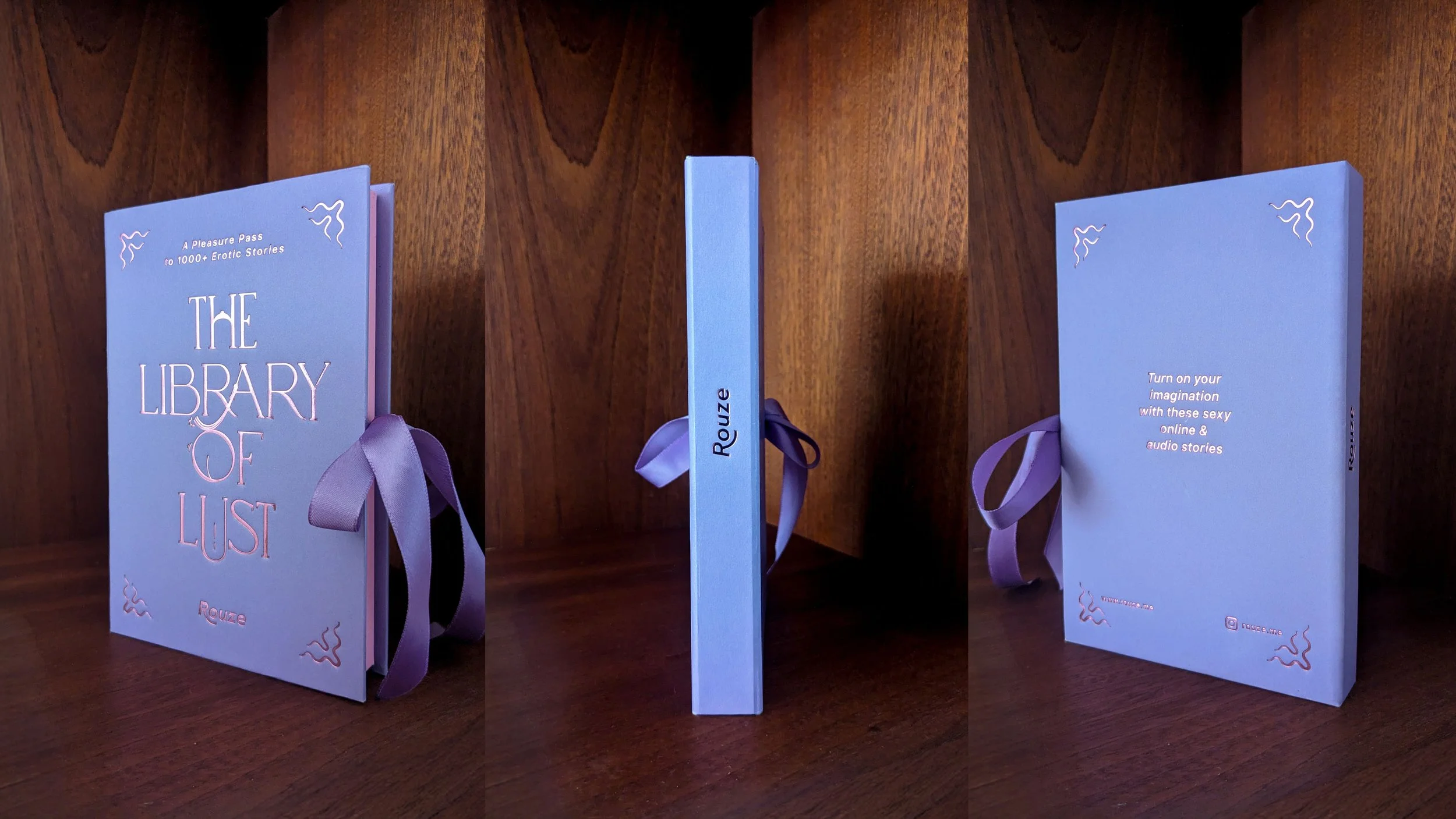 Referencing classic Victorian novels the final design resulted in “The Library of Lust”. A “book” which opens to reveal the gift card inside giving access to the full library of audio stories.